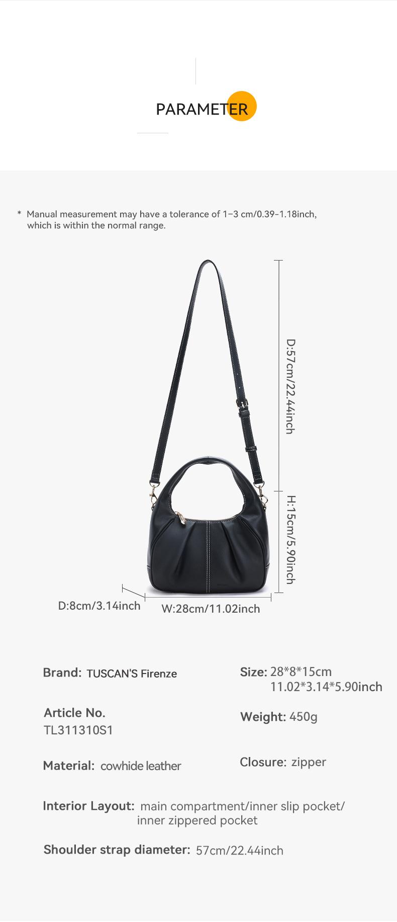 Calfskin Handmade Wrinkled Handheld Bag Shoulder Crossbody Women's Bag